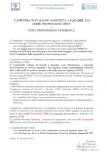 Campionato Italiano di Società a Squadre 2026 Category: home Cari bridgisti, pubblichiamo il comunicato che segue per il campionato di società a squadre 2026 promozione maschile e femminile. Buon gioco a tutti e buon anno! Condividi: